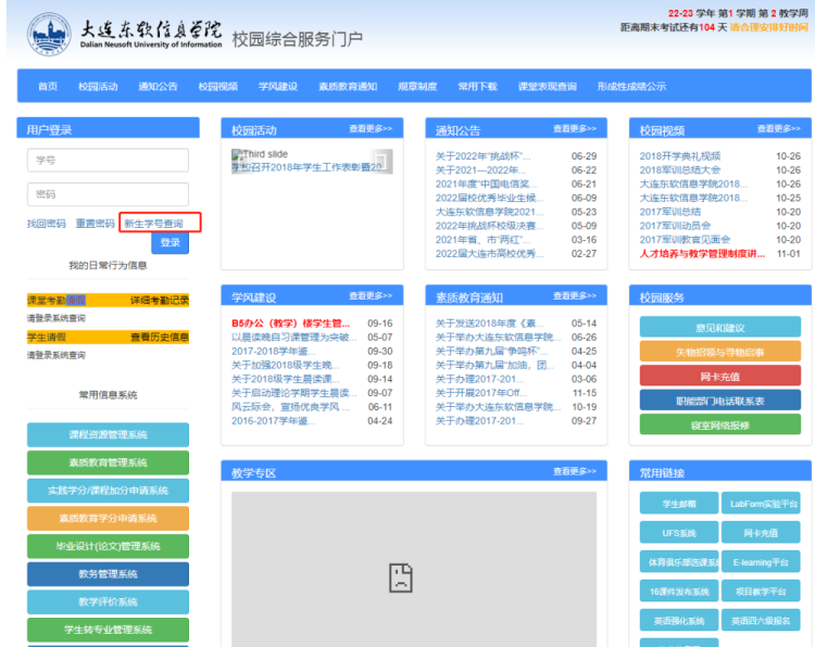 系统登录账号均为学号,新生请向专业素质教师获取学号信息,或通过学生信息门户新生学号查询功能查询学号。