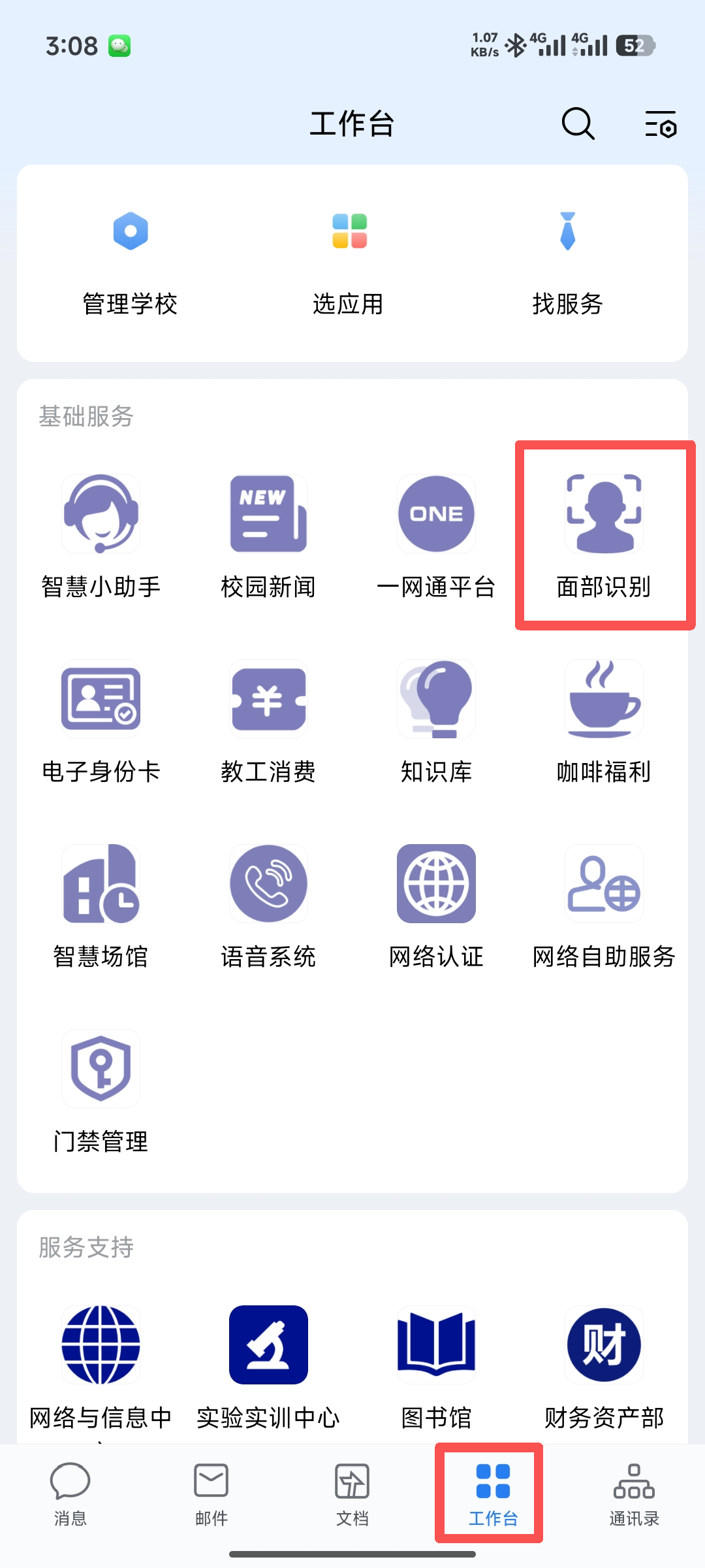 1、学校师生可通过企业微信——工作台——面部识别,然后进行人脸图像采集。