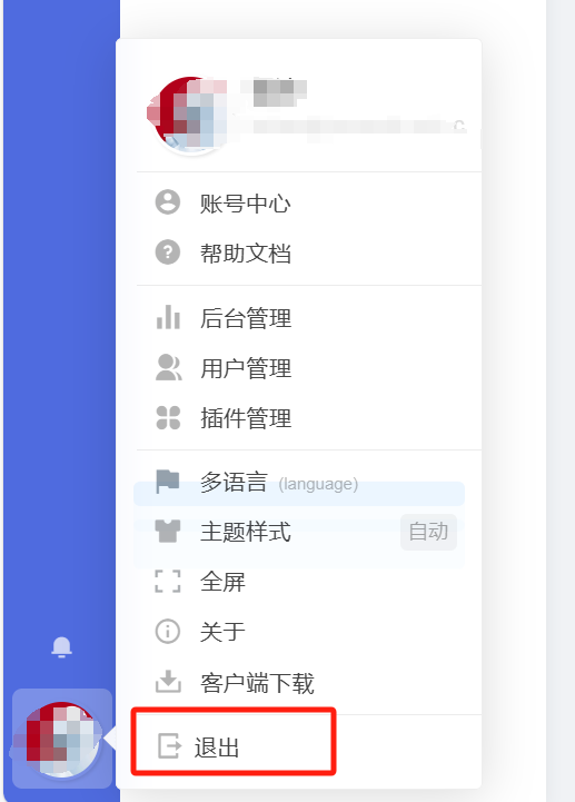 点击操作界面个人头像,在弹出的菜单面板,点选“退出”按钮,实现账号退出。