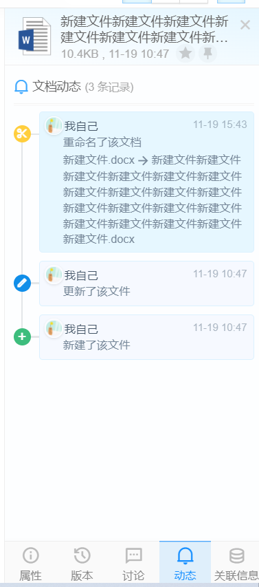 · 文件动态:文件的动态,包含上传、修改、下载等