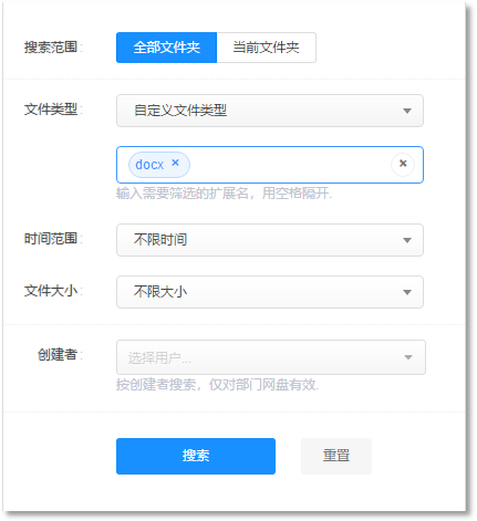 · 创建者 部门网盘下支持搜索某创建者的文件