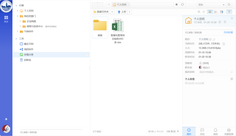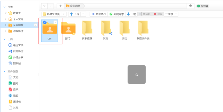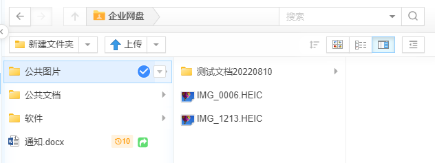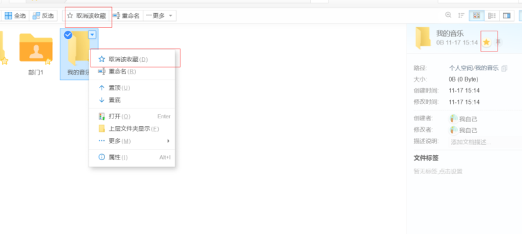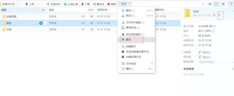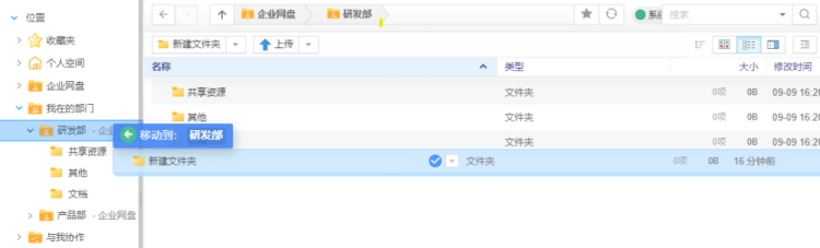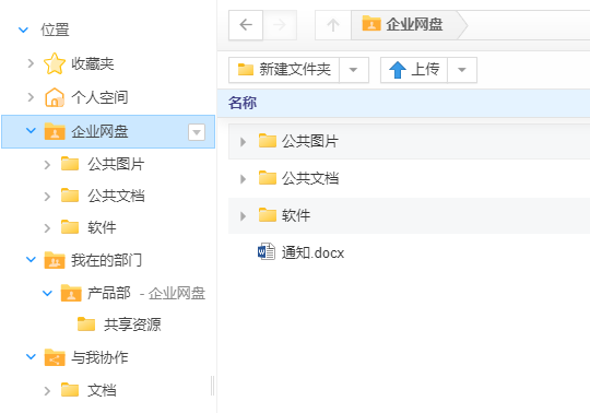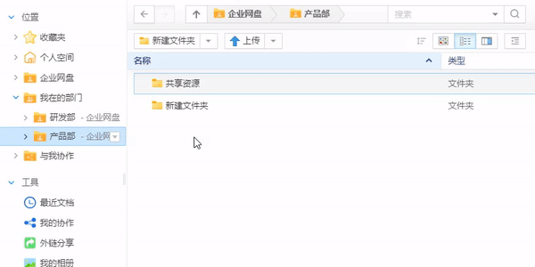 · 我在的部门:会列示用户所在的部门,点击可以进入部门文件夹