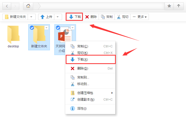 · 或选中目标文件,点击右键菜单,选择“下载”,也可将文件下载至本地