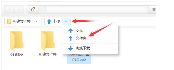 如需上传文件夹,可点选”上传“按键下拉菜单,点击”文件夹“,从弹出窗口选择文件夹上传。