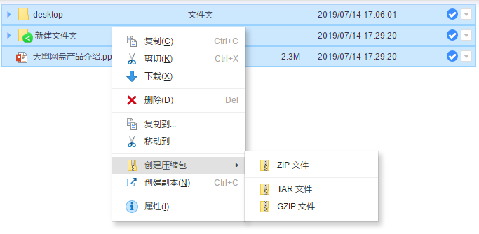 右击可以选中/多选文件、文件夹进行压缩文件包的创建。