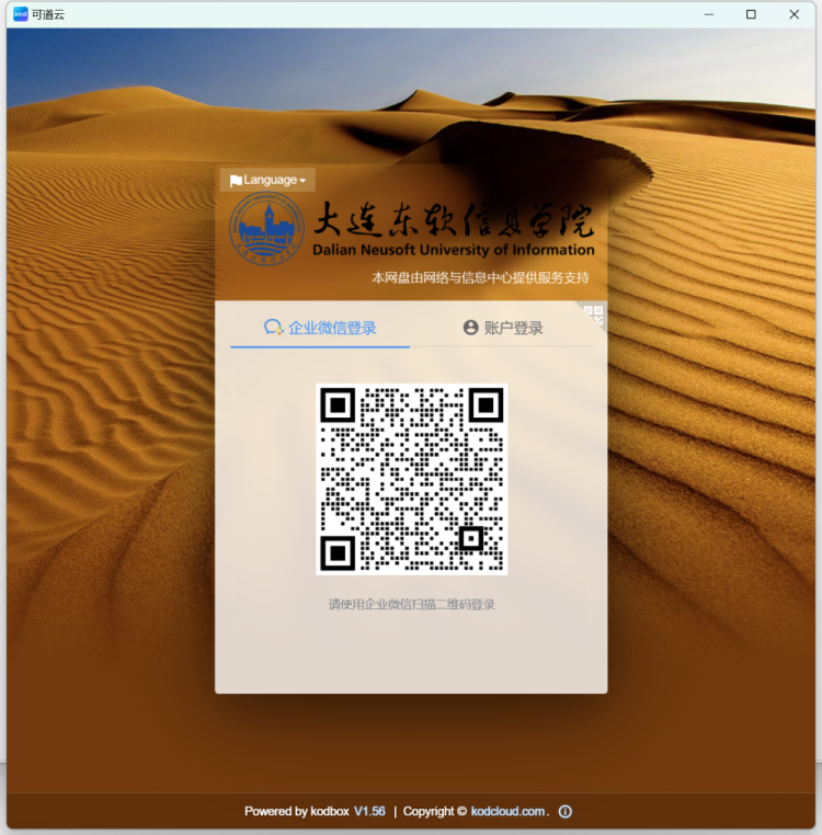 还使用浏览器访问可道云盘网址 https://disk.neusoft.edu.cn 并使用企业微信扫码登录