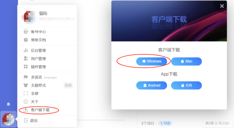 登录可道云盘网页端后,点击个人中心,下载相应的版本。 系统要求: