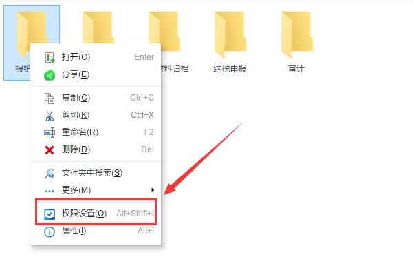 · 选中文件(夹),右键菜单>权限设置进行设置